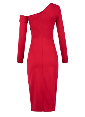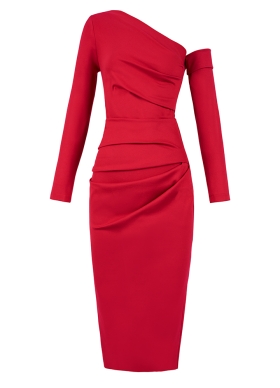Rochie midi conica rosie cu decolteu pe un umar Plazza