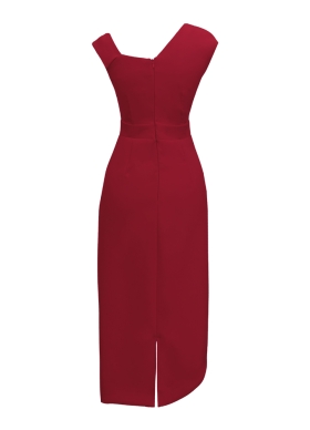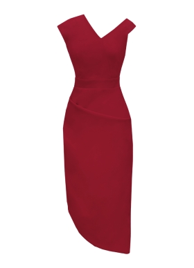Rochie midi conica rosie din vascoza cu decolteu asimetric Tease