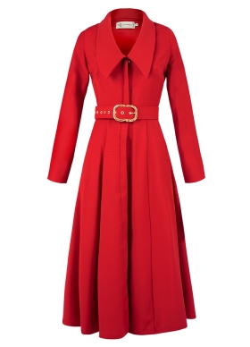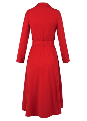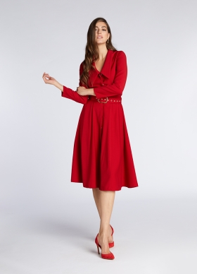 Rochie midi din lana rosie cu croiala evazata si decolteu tip camasa Zircon