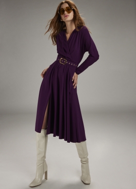 Rochie midi mov cu decolteu in V si curea asortata Indigo