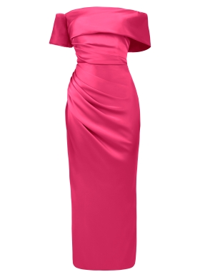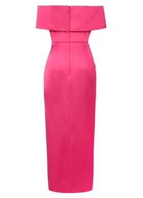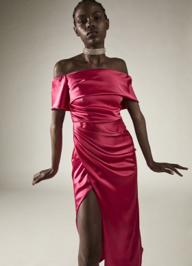 Rochie midi roz de cocktail cu maneca scurta si slit pe picior Vals