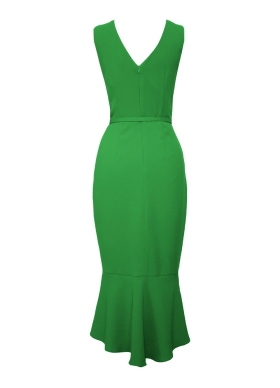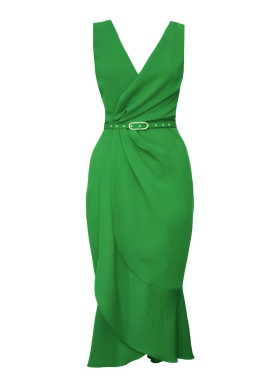 Rochie midi verde cu decolteu in V si curea asortata Fame