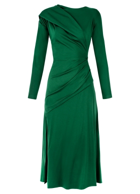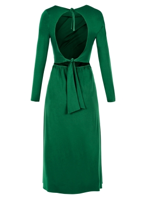 Rochie midi verde cu spate decoltat si fusta drapaje cu slit pe picior Riga