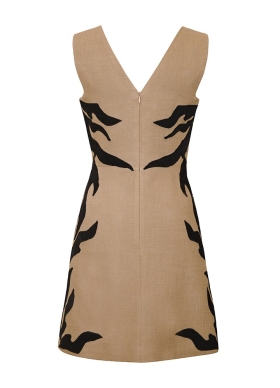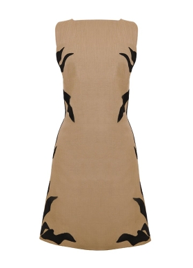 Rochie mini bej cu croiala in A si aplicatii brodate Dalia