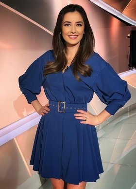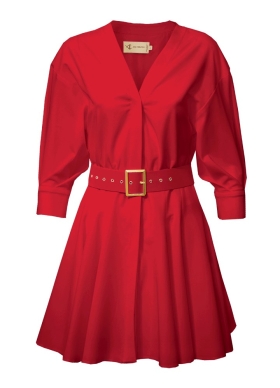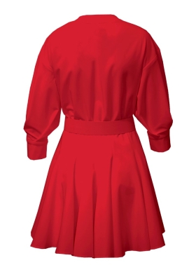 Rochie mini rosie evazata cu nasturi si curea asortata Rosy