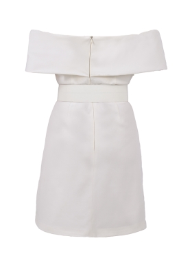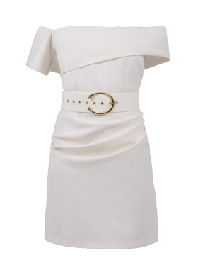 Rochie scurta alba din lana cu decolteu pe umeri si curea asortata Vegas