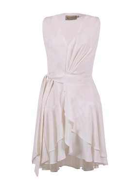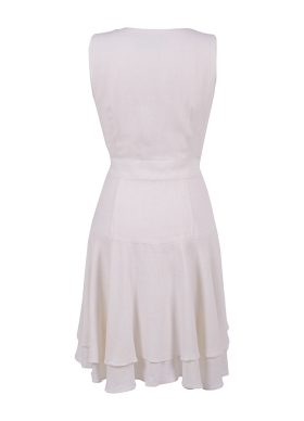 Rochie scurta alba din vascoza si in cu decolteu in V si fusta cu volane Corfu