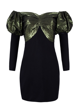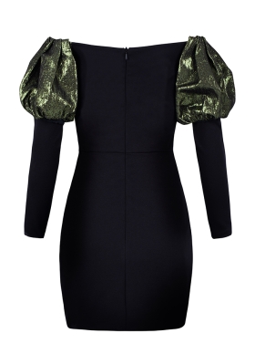 Rochie scurta de petrecere neagra cu croiala in A si umeri supradimensionati Mambo
