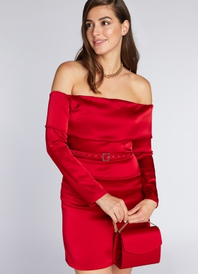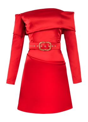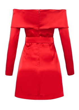 Rochie scurta de petrecere rosie cu decolteu pe umeri si curea asortata Lido