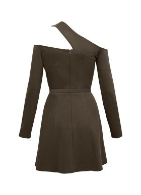 Rochie scurta kaki din vascoza cu top asimetric si maneci lungi Bonnie