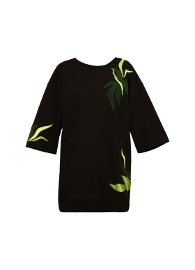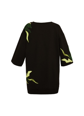 Rochie scurta larga din bumbac cu broderie si maneci trei sferturi Jungle