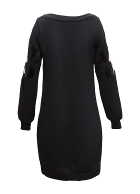 Rochie scurta neagra din bumbac cu detalii din tulle si broderie Artist
