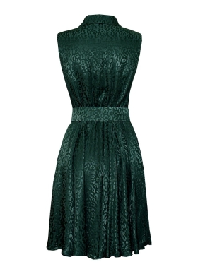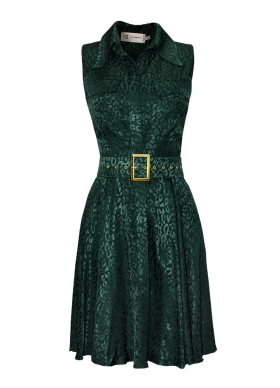 Rochie scurta verde cu animal print din vascoza cu buzunare si curea asortata Nairobi