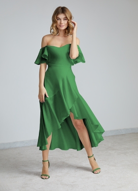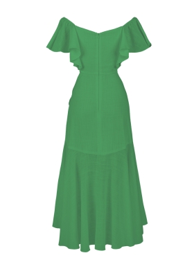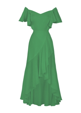 Rochie verde asimetrica cu volane si fusta petrecuta Thalia