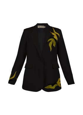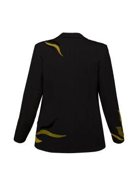 Sacou lung negru din lana cu broderii Jasmine